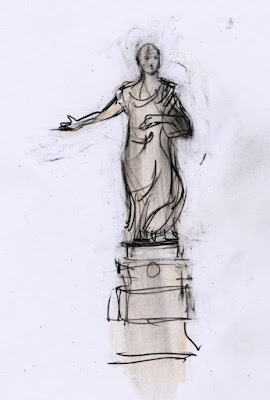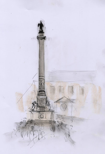 Julie suggested we walk back past the Spanish Steps, this gave me one last opportunity to draw another monument, this time the Virgin Mary on top of a column, but before I could complete the drawing Julie and Jung were tugging at me, "we must go Julian, we have a plane to catch"