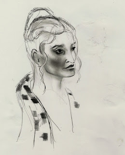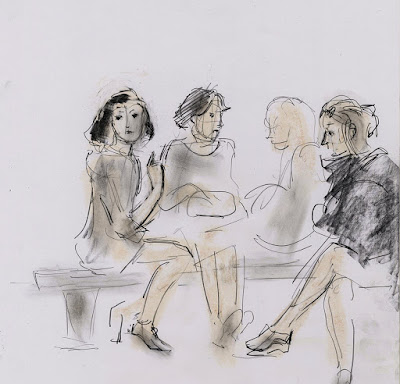 In this bar Marguerita sits next to me as I draw, and we discuss the crowds and their Continental intellectual aspect; There is Kesena from Ukraine