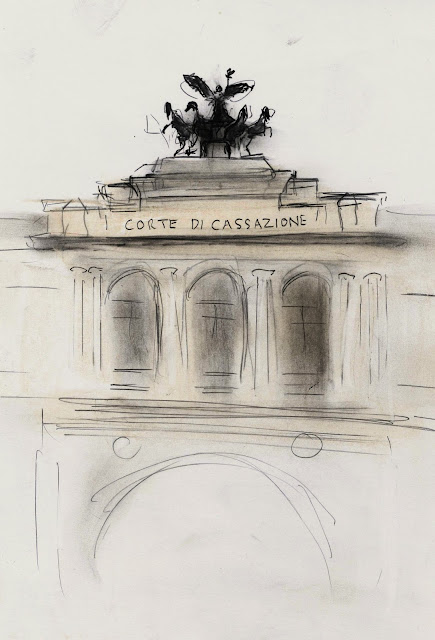 You will remember that I mentioned that Palermo has the largest, maybe the most opulent opera house in all of Italy. It is my final evening and I have bought a ticket for the opening performance of Il Barbiere di Siiglia (Barber of Seville). On the way I meet Maria and her children, and they all dance around me calling me "papa". I want to stop and draw because the images they are creating are so exciting but walk on but I will be late to the opera house.