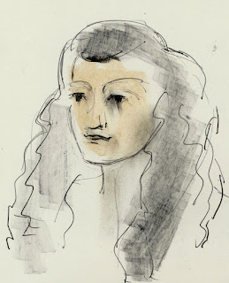 I first meet this interesting lady sitting on the steps next to Angelo, and I like her pose so much that I start drawing before she moved or saw me. I guess what her reaction will be; as soon as she sees I am drawing her she rises like hornet, striding up to me, stinging me with Italian invective and gesticulating. But I ignore her complaints and finish my portrait